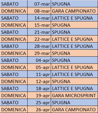 - Le gare si svolgeranno interamente nella giornata di Domenica. Il Sabato precedente alla gara e' riservato alle categorie in gara la Domenica per prove libere. Eccezione per la notturna che si svolgerà il sabato e la pista è riservata per prove libere il Venerdì.